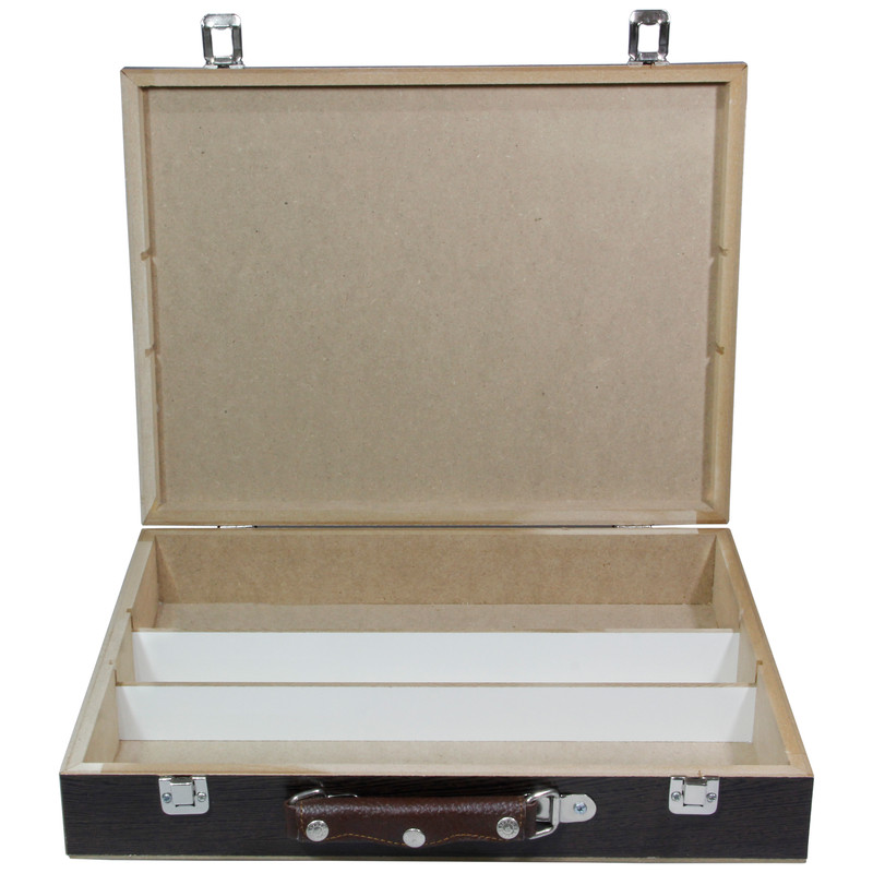 این جعبه از جنس چوب ساخته شده و داراری قفل و دسته یا کیفیت و پارتیشن بندی داخلی می باشد.